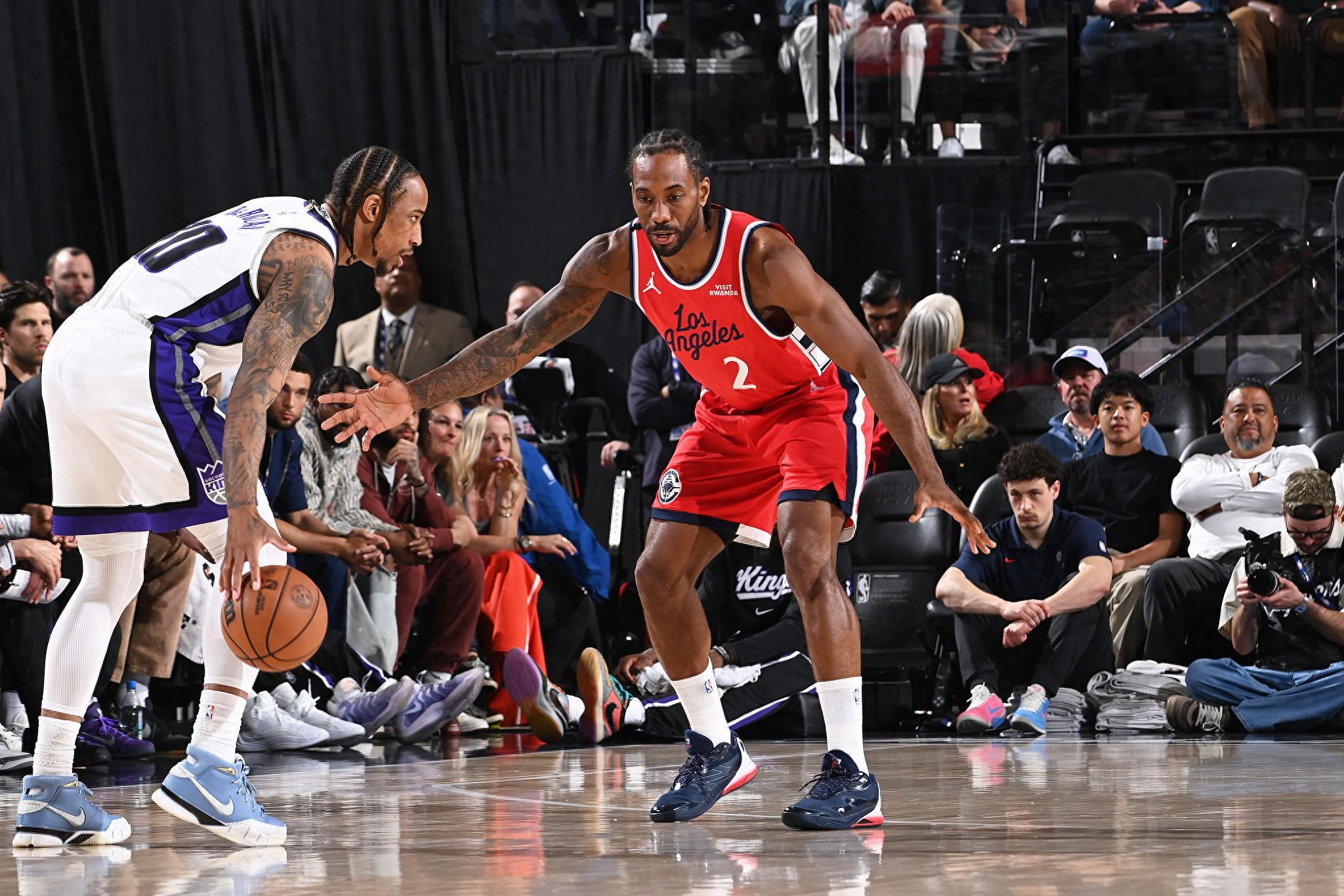 别看国王队排在倒数行列,他们依旧有德罗赞+威少两大核心带队,并且两人与快船队之间均颇有渊源,德罗赞作为昔日的北境之王,不仅在猛龙得到小卡的交易被送走,小卡还在加盟当年就率队夺冠,让德罗赞的名声严重受损。